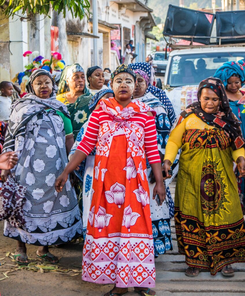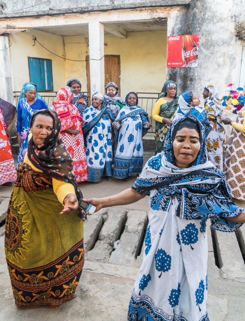 The anda lasts nine days, with different ceremonies on each day, while the harusi in Anjouan and Mohéli is usually shorter. During the festivities, women in their colorful traditional outfits, adorned with flower necklaces and gold jewelry, and men in their boubous, perform various dances interspersed with prayers and speeches. Traditional dishes and cakes are served and every attendee goes home with a “sachet” of drinks and snacks.